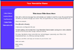 HTML Photoshop Adobe Fireworks Google Picasa Belum lagi anda harus membayar beratus-ratus ringgit untuk membeli program software ini sendiri dan juga membeli buku dan panduan untuk belajar perkara tersebut. Belum lagi setelah anda mempelajari semua program ini, anda masih perlu untuk menggaru kepala anda selama berjam-jam untuk merekacipta design yang kelihatan profesional untuk newsletter anda. Jadi, jika anda tidak mempunyai masa luang yang begitu banyak atau tidak tertarik dengan kepenatan untuk mencipta design, mari kita teruskan ke langkah seterusnya ... Pilihan 2: Anda Boleh Guna Newsletter Template Percuma OK, ini mungkin nampak lebih menjanjikan keuntungan pada awalnya, tetapi mari kita lihat apakah ia benar-benar baik untuk kita.... Ada beberapa laman web di Internet yang menawarkan template newsletter percuma semata-mata tanpa ada bayaran sedikitpun yang boleh anda gunakan untuk newsletter anda, tetapi kenyataannya, kaedah ini tidak bebas sama sekali :- Ada 3 masalah dengan template percuma ... 1. Anda lihat, untuk mencari website ini, anda harus menghabiskan berjam-jam mencari di Google, pergi ke website yang berbeza, dan mencuba pelbagai template. Masa adalah wang - sebenarnya itu lebih penting daripada wang kerana anda boleh menghabiskan masa untuk menghasilkan wang, tidak peduli berapa banyak wang yang anda hasilkan, tetapi tidak ada yang dapat menambah malahan satu saat ke 24 jam masa yang anda miliki saat ini. Jadi dengan menghabiskan begitu banyak masa, anda benar-benar kehilangan waktu berharga anda. 2. Setelah anda menemukan template percuma yang tidak terlalu buruk dan anda memutuskan untuk menggunakannya untuk newsletter anda, selepas beberapa ketika anda melihat newsletter lain benar-benar menggunakan template yang SAMA dengan anda gunakan. Masalah dengan template percuma adalah ramai orang membuat carian dan menggunakannya untuk template mereka sendiri. Jadi template yang anda gunakan untuk newsletter anda mungkin juga digunakan oleh beratus-ratus newsletter yang lain. Sekarang kira berapa banyak akan kerugian reputasi anda ketika newsletter anda telah berubah menjadi sebuah newsletter yang popular dan terkenal tetapi pelanggan anda datang dengan salinan design newsletter sama seperti anda. 3. Template newsletter percuma adalah tidak profesional sebagai template newsletter dibayar. Jadi dengan menggunakan template percuma, anda benar-benar hilang tarikan design yang lebih tinggi sebagaimana design yang profesional serta berkesan untuk pelanggan. Newsletter anda adalah penting untuk anda. Dan anda akan menghabiskan berjam-jam masa berharga anda setiap minggu untuk mencipta masalah baru untuk itu. Apakah anda akan mengabaikan design newsletter anda yang sangat penting itu?